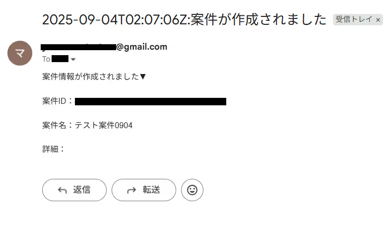 固定値で設定すると、毎回同じ内容が通知されてしまいます。今回の「案件情報が作成されました▼」などの文は固定値で設定しても大丈夫ですが、それ以外は、取得した値を設定するようにしましょう。