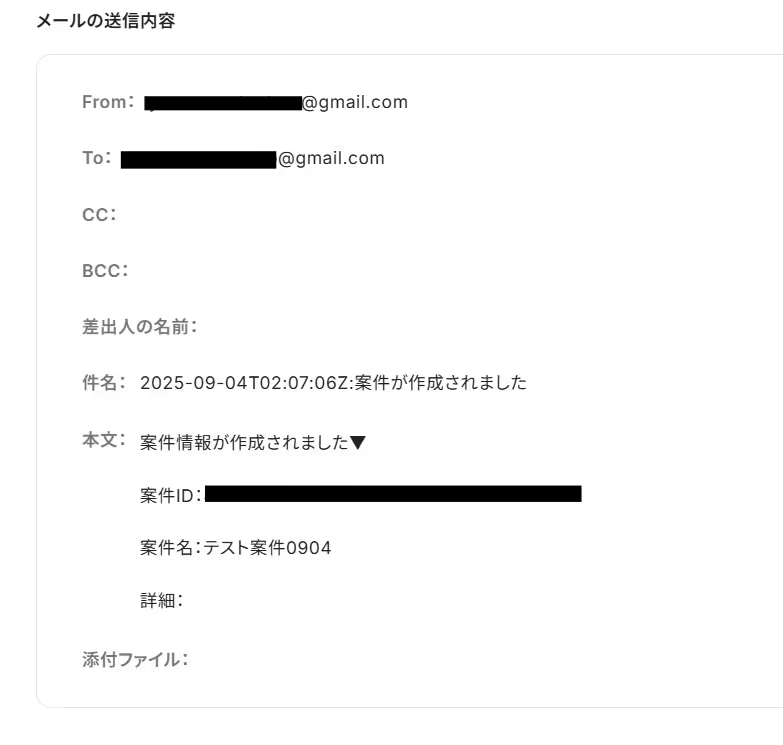 ※「件名」や「本文」は、固定の文章や取得した値を組み合わせ、自由にカスタマイズできるので、送信したい形式で設定してみてくださいね。