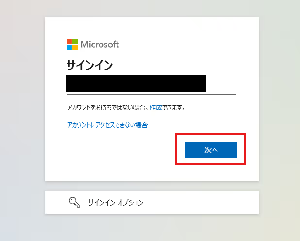 2.次の画面で、パスワードを入力し、「サインイン」をクリックしてください。