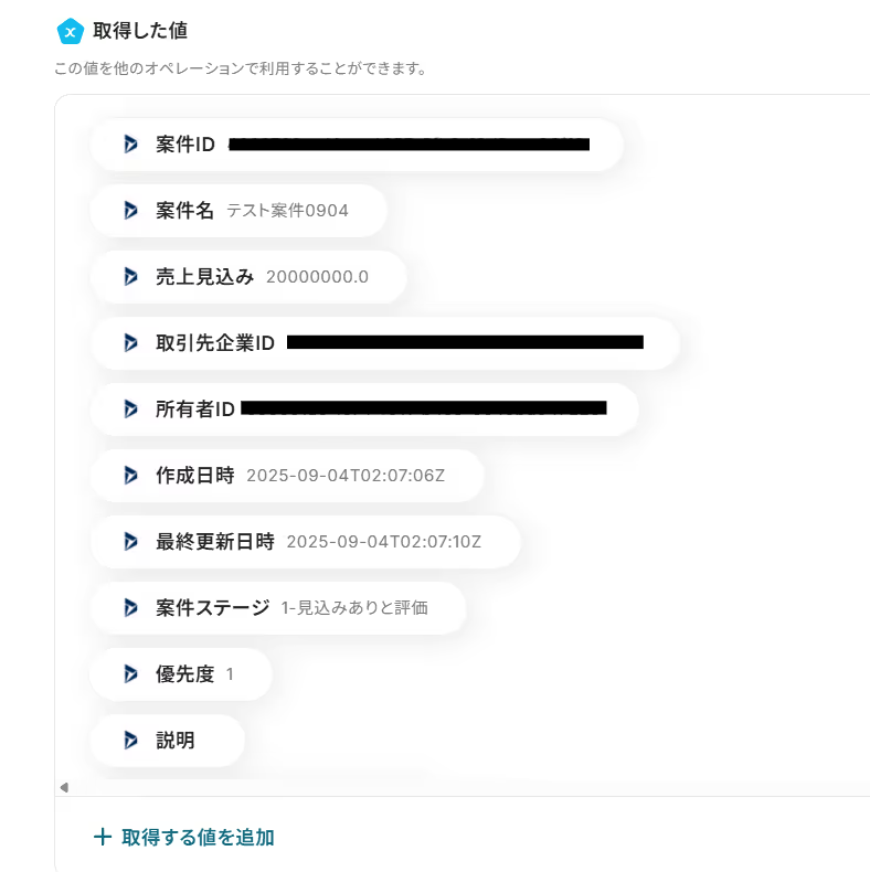 取得した値は、後続の設定で活用できます!