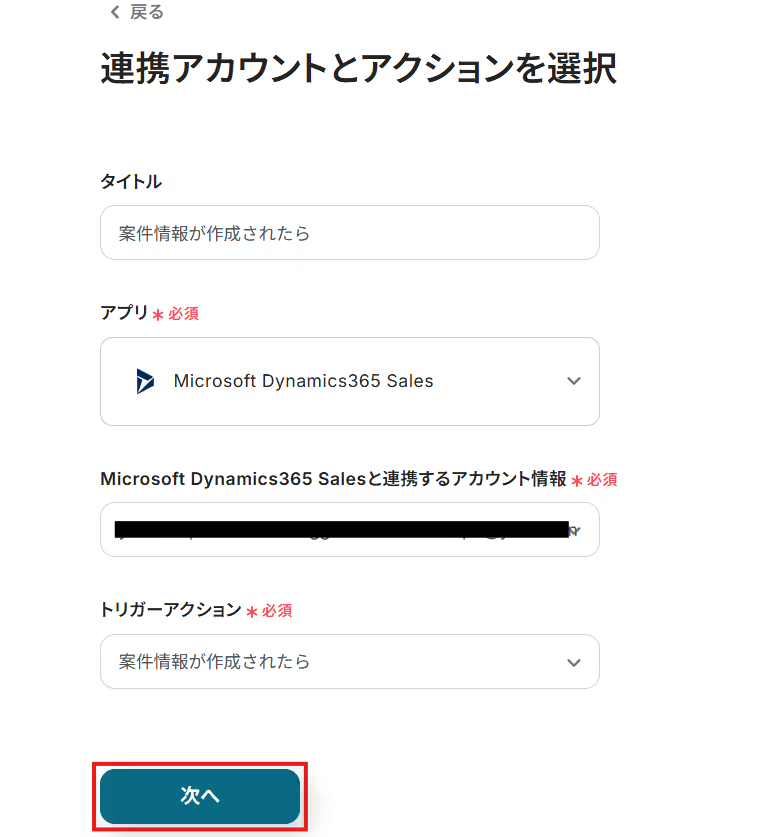 ※後続のMicrosoft Dynamics365 Salesのトリガー設定時のテストで必要になります。