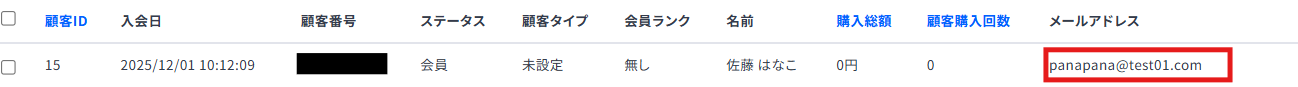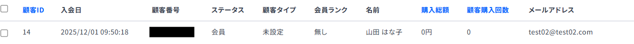 Webhookの情報を保存したら、ecforceでテスト用に新しい顧客を作成してください。