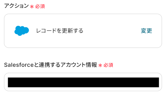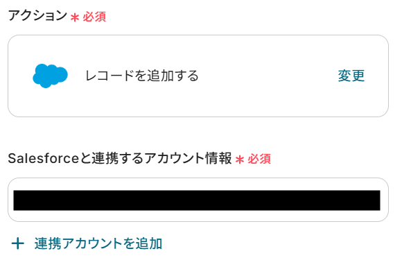 - レコードが存在する場合はSalesforceの「レコードを更新する」アクションを、存在しない場合は「レコードを追加する」アクションを設定します。