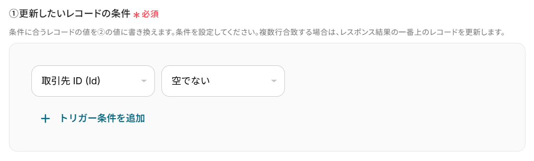 - Salesforceにレコードが存在するかどうかを判断するための分岐条件は、ユーザーの運用に応じて任意で設定できます。例えば、メールアドレスや電話番号の一致を条件にするなど、識別に用いる項目を自由にカスタマイズしてください。