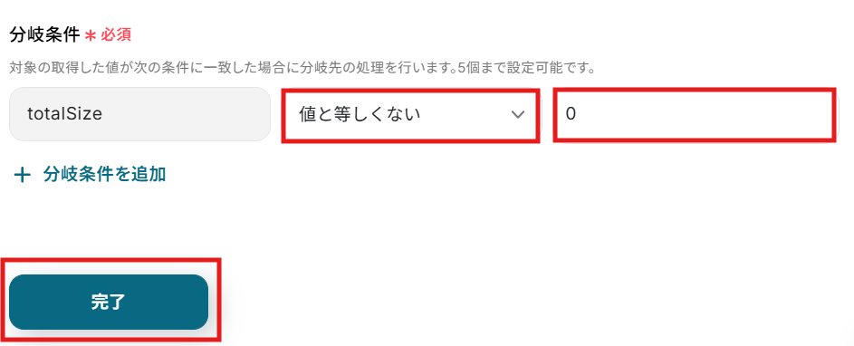 - 分岐はミニプラン以上のプランでご利用いただける機能(オペレーション)となっております。フリープランの場合は設定しているフローボットのオペレーションはエラーとなりますので、ご注意ください。
