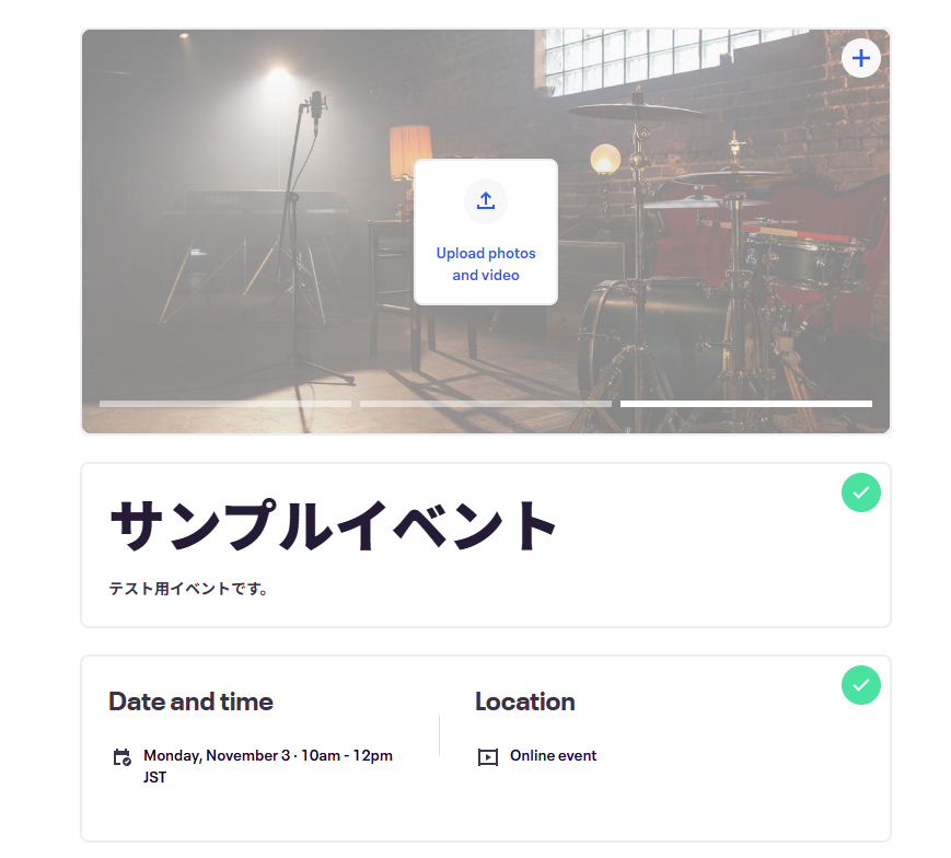 テスト用のため、イベント内容は架空の情報(「株式会社test」や「テスト太郎」など)でOKです!