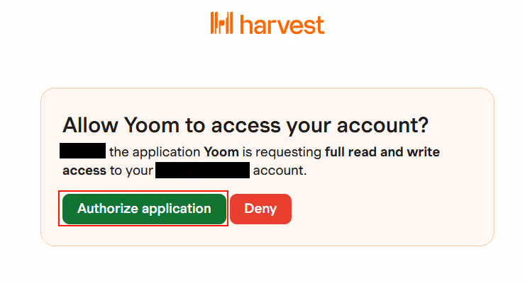 Harvestと連携するアカウント情報には、ステップ1で連携したアカウントが表示されています。