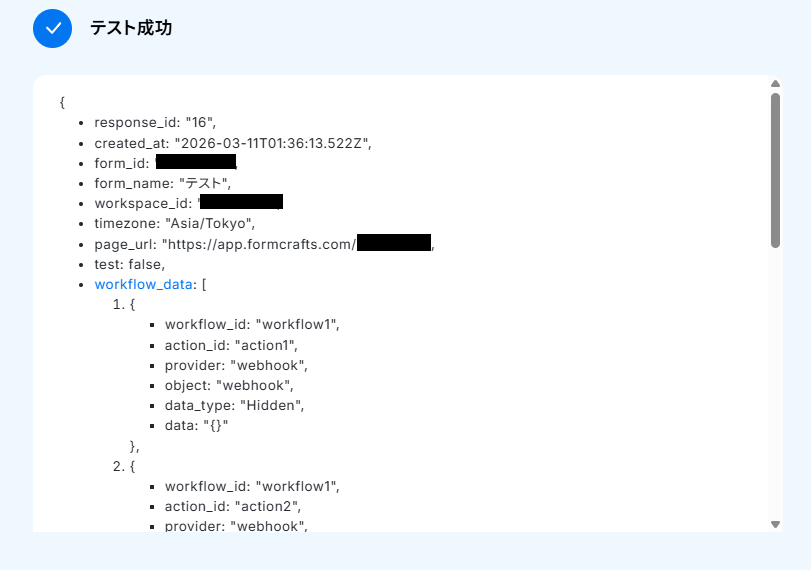 これで、「FormCraftsで新しいResponseを受け取ったら、ClickUpにタスクを作成する」フローの完成です。