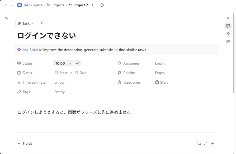 ClickUpにタスクが自動で作成されているので確認しましょう。