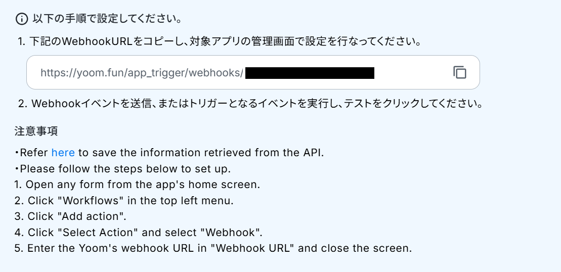 注意事項を確認し、画面に表示されているWebhookURLをコピーしてください。
