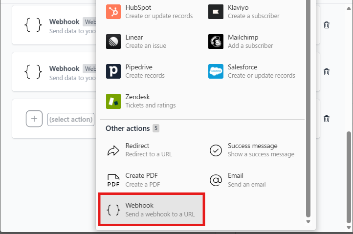 下記画面が表示されるのでWebhookという項目を選択しましょう。
