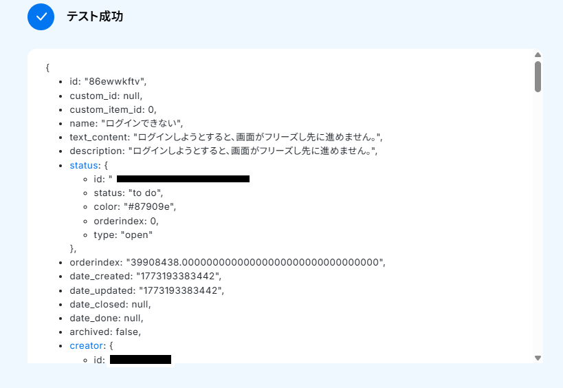 ステップ4:ClickUpにタスクを自動で作成するアクションの設定