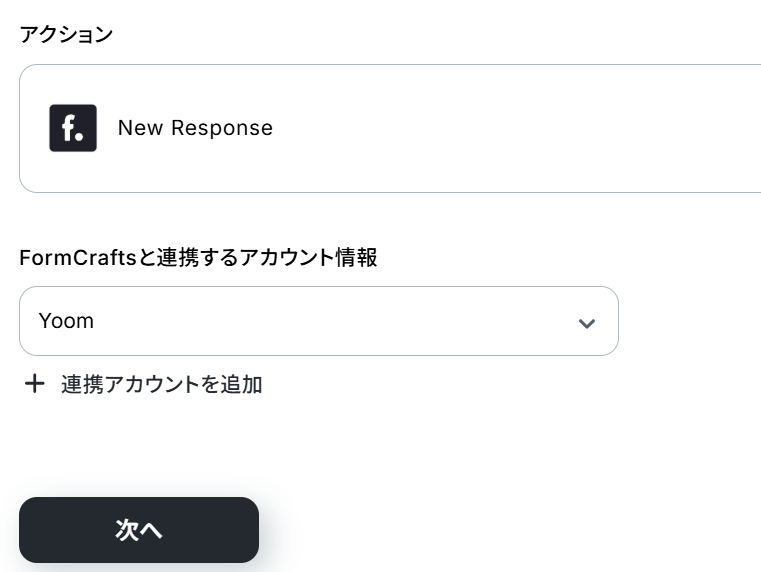 FormCraftsと連携するアカウント情報を確認し問題無ければ、「次へ」ボタンをクリックします。