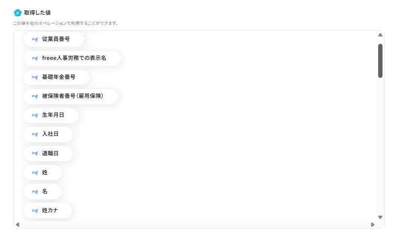 この後、この取得した値の内容を入力に使用することができます。(取得した値に関して、詳しくはこちらをご確認ください。)