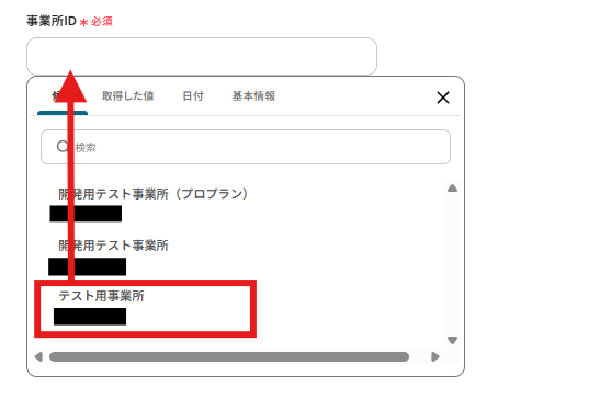 事業所IDは以下のように表示される候補から選択しましょう。