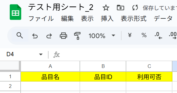 今回は以下のような記録用シートを、Google スプレッドシート上に作成しています。