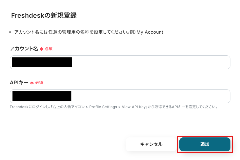 ※後続のFreshdeskのトリガー設定時のテストで必要になります。