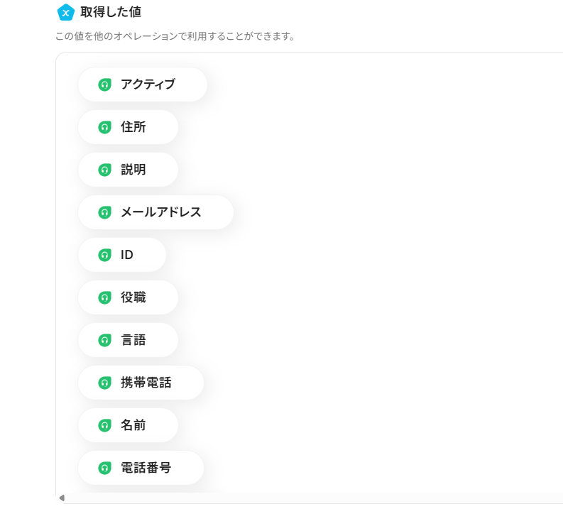トリガーやオペレーション設定時に、「テスト」を実行して取得した値です。