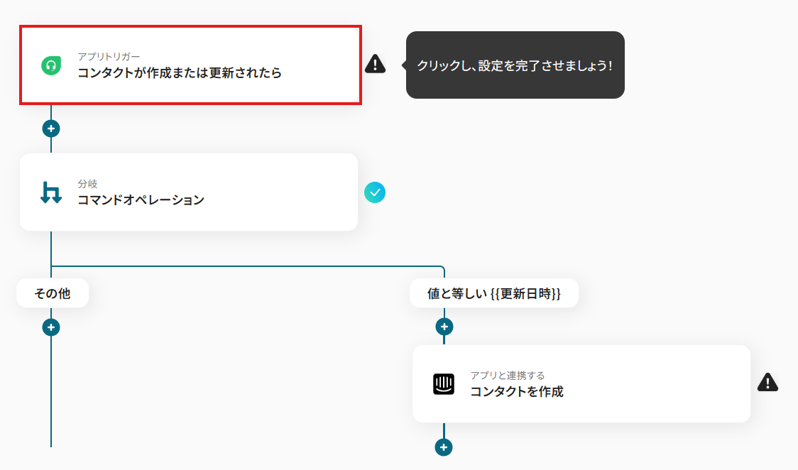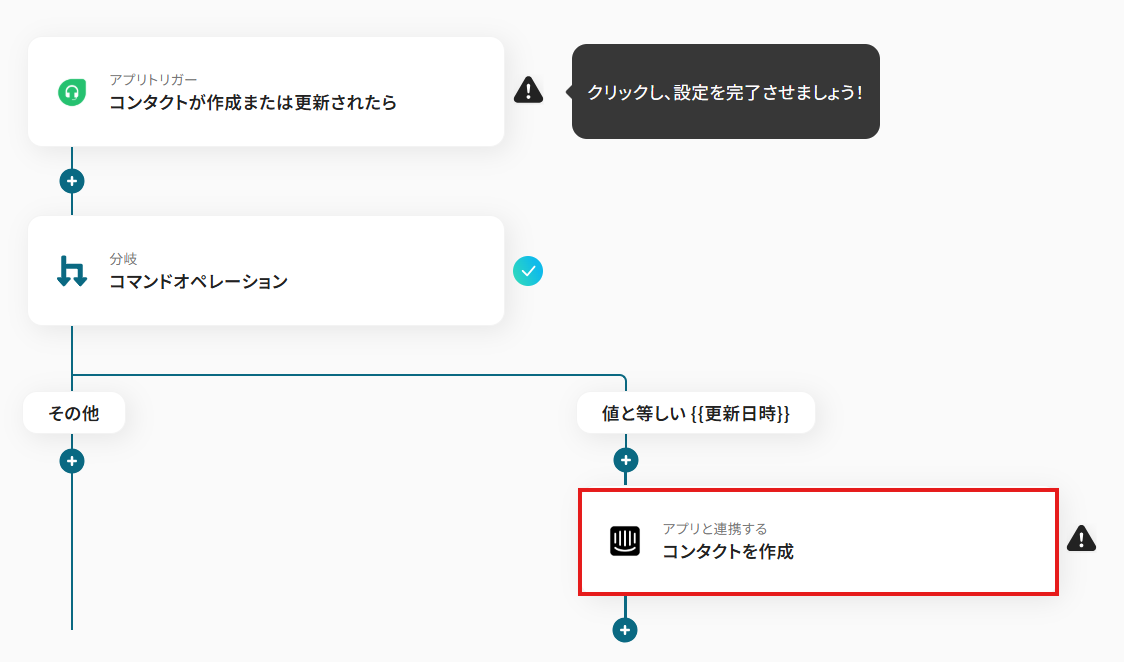 こちらのステップでは、コンタクトの作成時のみ後続の処理を行うために分岐設定をします。