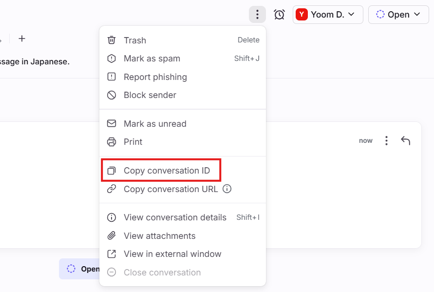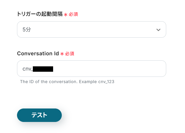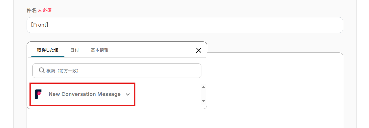 新規メッセージを検知したい会話の「Conversation Id」を設定。 IdはFrontの対象Conversationから取得できます。