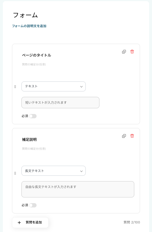 このようにフォームをカスタマイズすることで、議事録やレポートなどの文章量が多いケースでも、十分な情報を入力できるようになります。