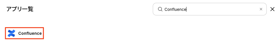 新規接続をクリックしたあと、アプリのメニュー一覧が表示されるのでConfluenceと検索し対象アプリをクリックしてください。