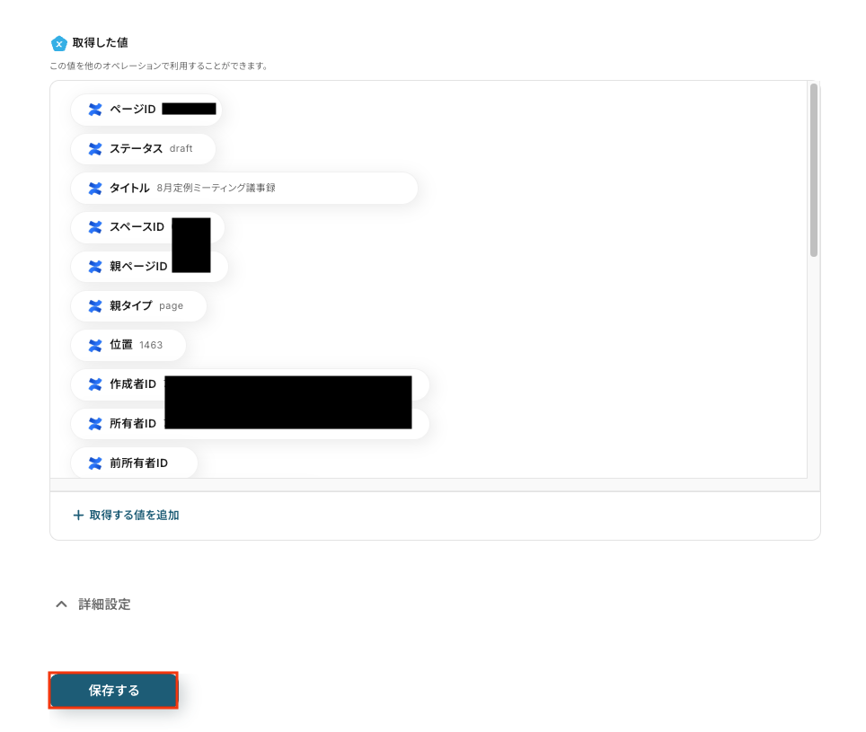 以下の画像の取得したアウトプットをもとに、Confluenceでページの作成が可能です。