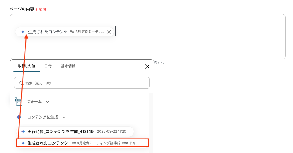 ここで取得した値(=アウトプット)は、この後のステップでGeminiによりコンテンツを生成する際などに利用します。