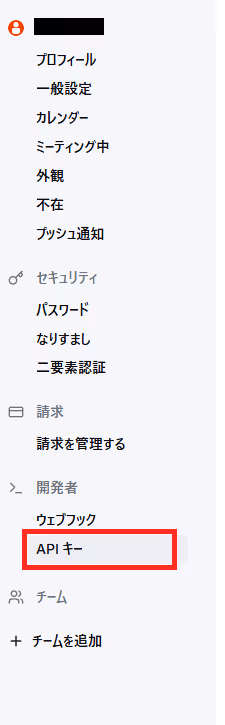 Cal.comにログインし、設定から「APIキー」をクリックしてください。