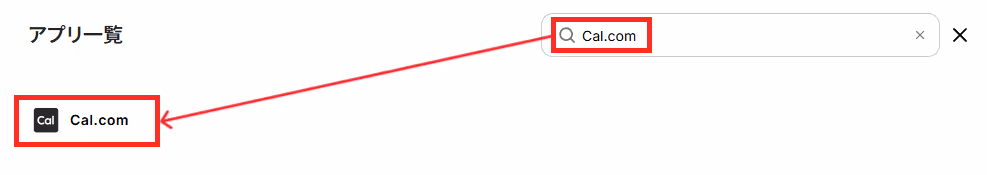 アプリ一覧の検索窓からCal.comを検索し、クリックします。