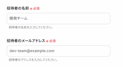 「招待者の名前」と「招待者のメールアドレス」を、それぞれ任意で入力しましょう。