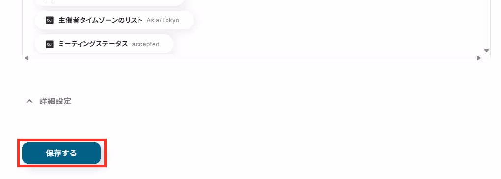 確認できたら、Yoomに戻り「保存する」を押してください。