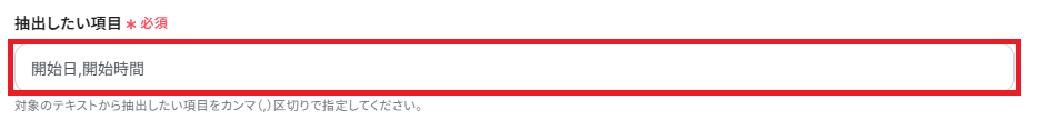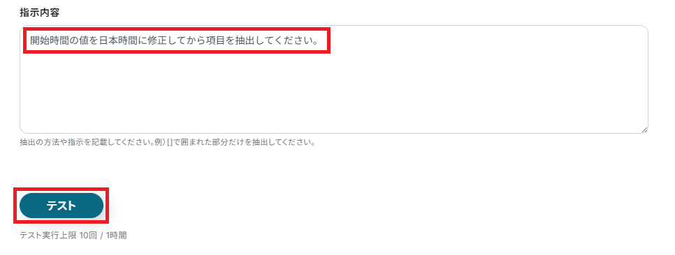 指示内容を入力する部分に「開始は〜といった表現の直後に記載されている時刻」など情報の位置を指定したり、「開始時間だけを抽出してください」のような不要な情報を除外する条件を入れることも可能です。