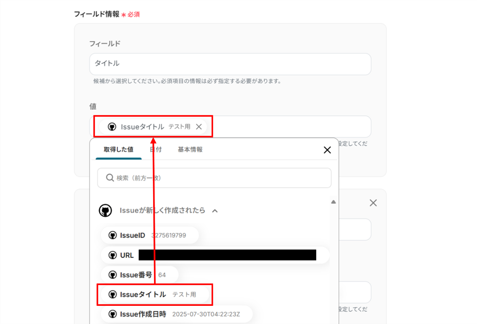 「取得した値」にGitHubの情報が反映されればテスト成功です。