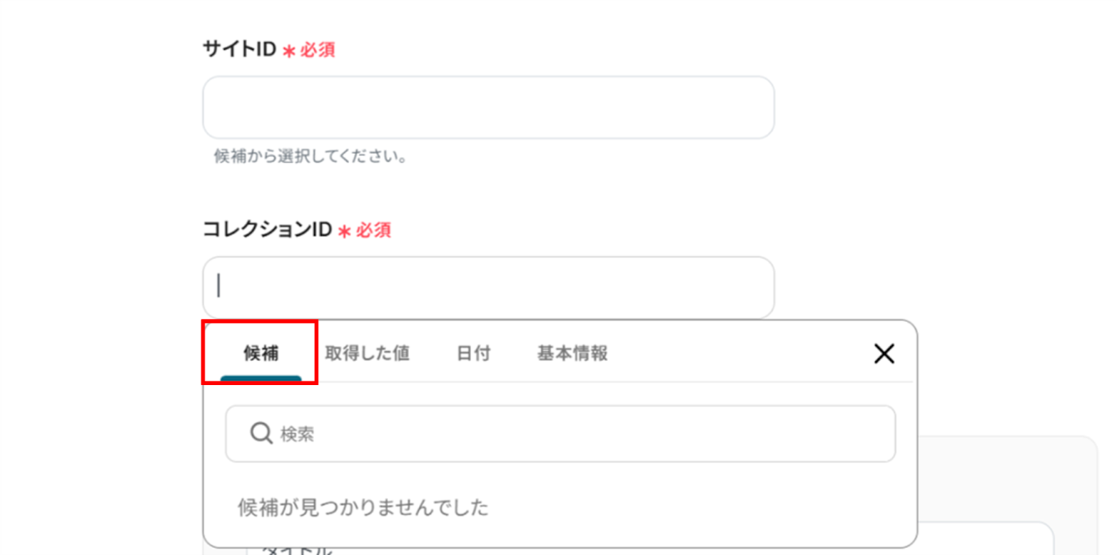 (3)「API接続設定」画面から、サイトIDとコレクションIDを候補から選択します。