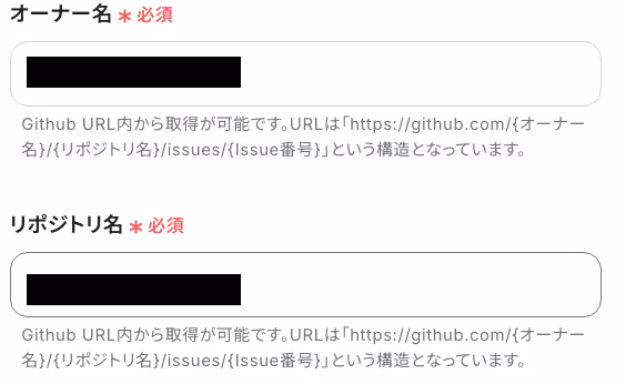 ※GitHubのURL内から取得できます。https://github.com/{リポジトリオーナー}/{リポジトリ名}という構造になっています。