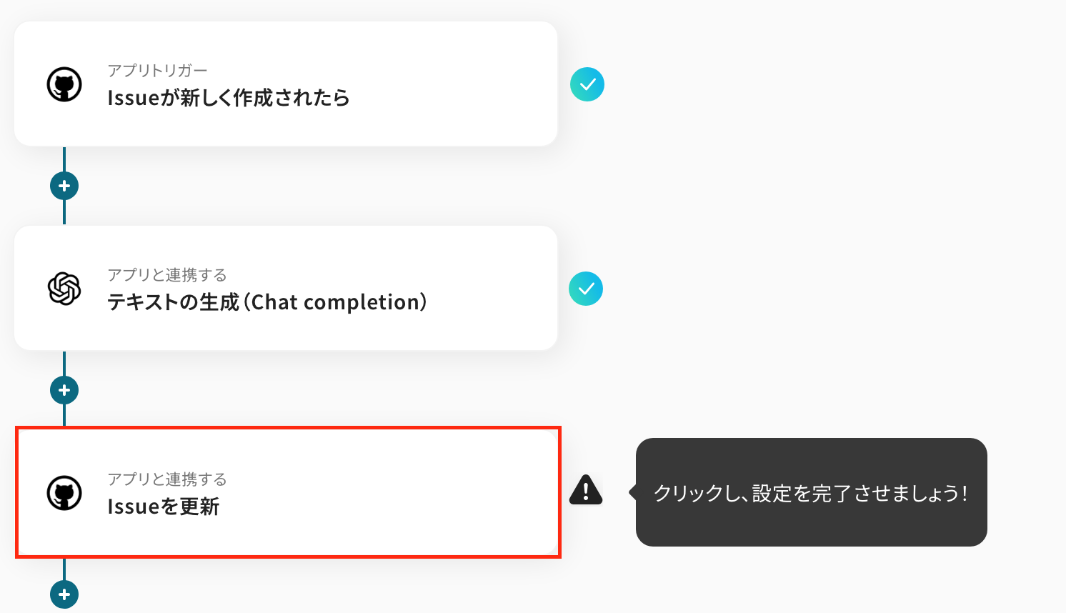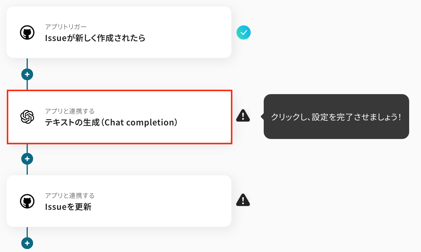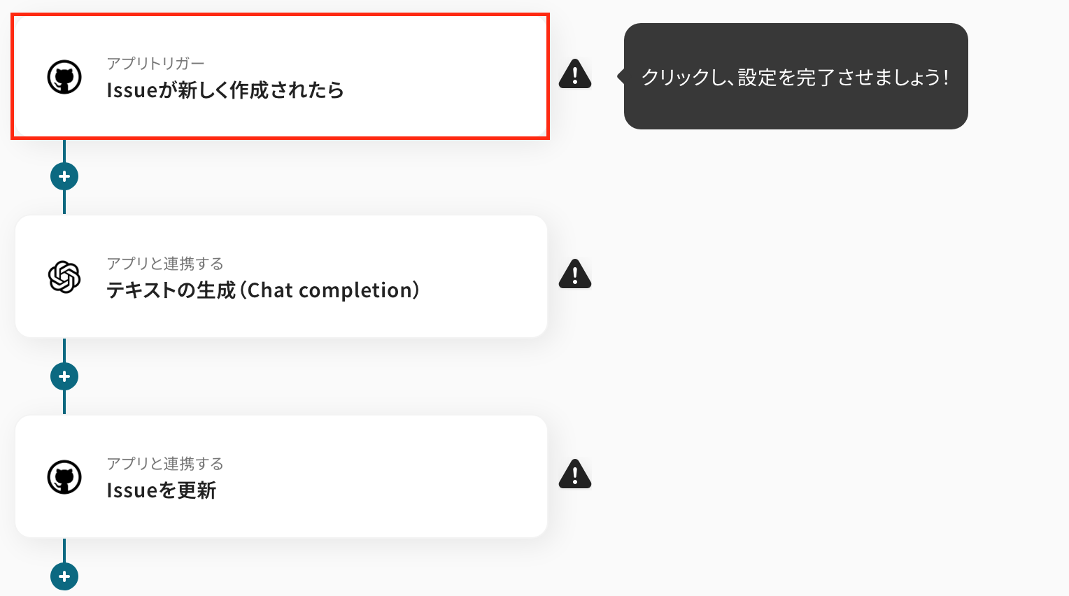 ここからは、「GitHubでIssueが作成されたら、OpenAIで内容を解析しその結果を追加する」フローの設定をしていきます!