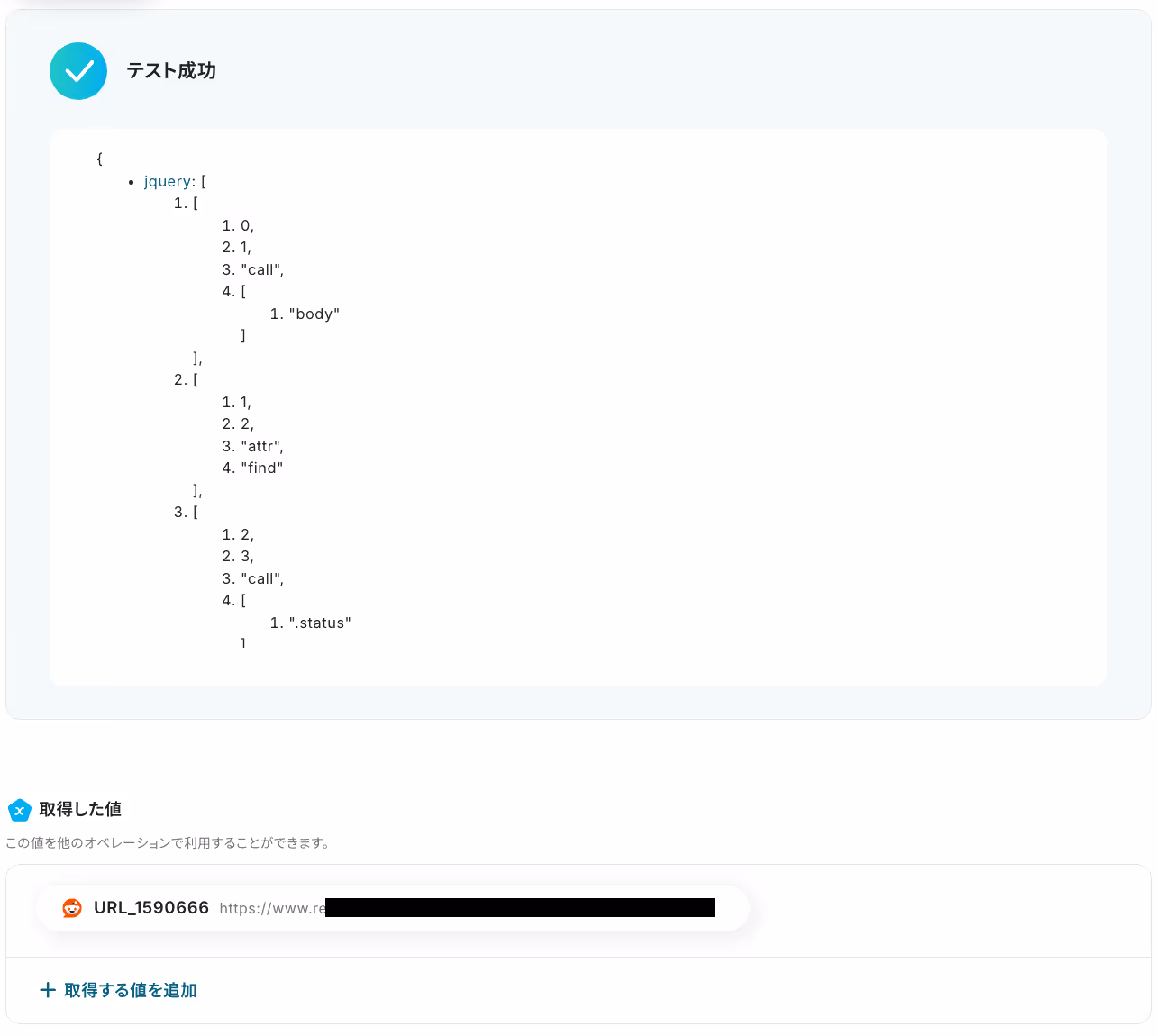 テストが成功すると、取得した値が表示されます。