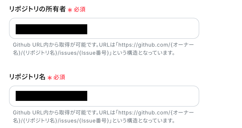 ・GitHubの「Issueが新しく作成または更新されたら」というトリガーで、オーナー名とリポジトリ名を指定してください。
