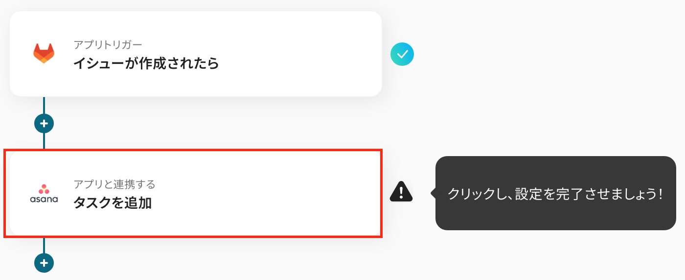 最初の設定です。 これから「GitLabにイシューが作成されたら、Asanaにタスクを追加する」 フローを設定していきます! まずは、以下の赤枠をクリックしてください。