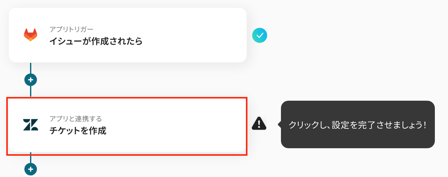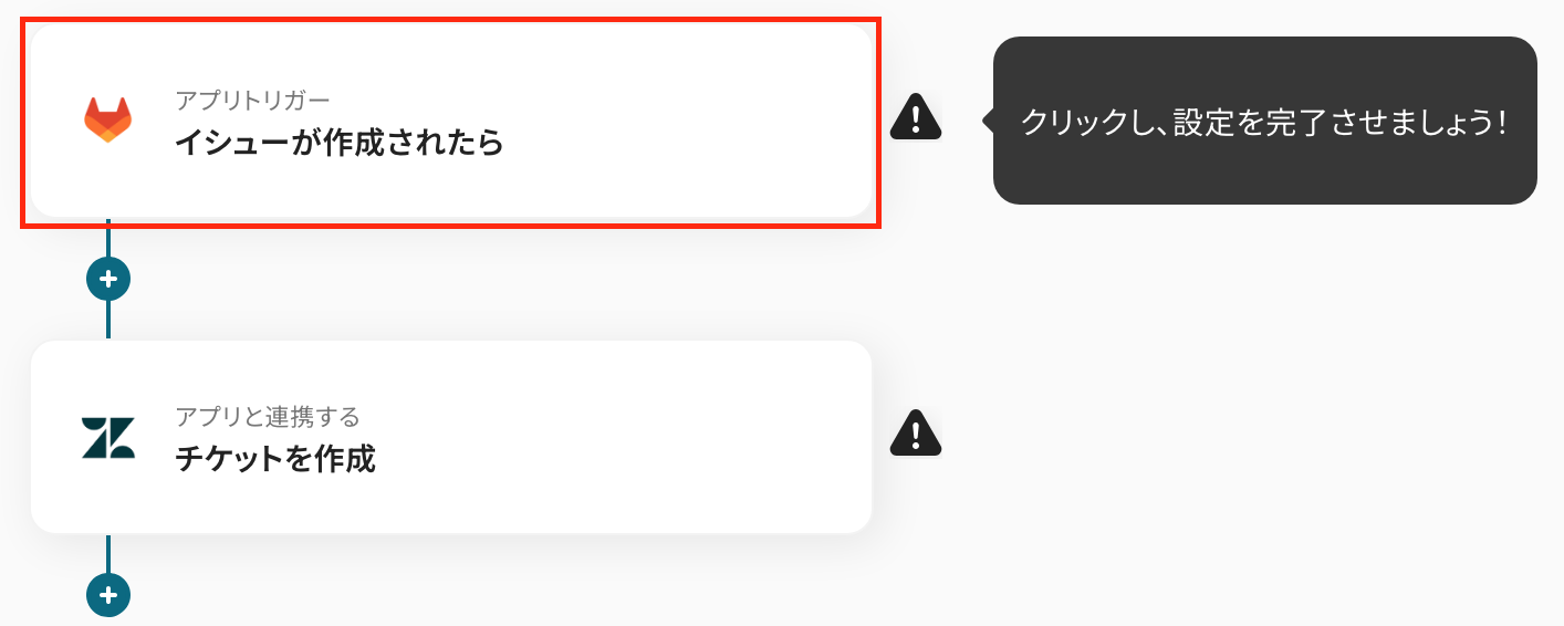 最初の設定です! これから「GitLabにイシューが作成されたら、Zendeskにチケットを作成する」 フローを設定していきます! まずは、赤枠部分をクリックしてください。