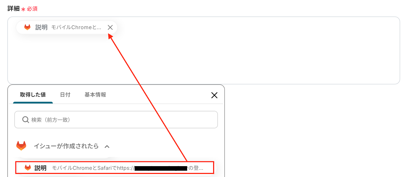 「詳細」も入力欄をクリックして表示されるアウトプットから設定しましょう。