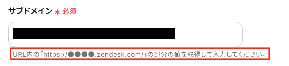 続いて、必須項目を設定します。 「サブドメイン」は、入力欄下の注釈を参照して入力してください。