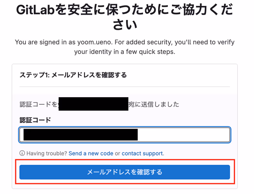 認証コードを入力し、「メールアドレスを確認する」をクリックします。