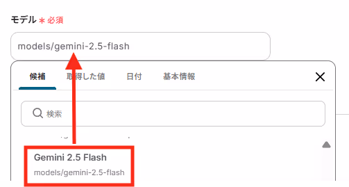 上記の画像では、2.5flashを使用しているため、同じモデルを設定します。