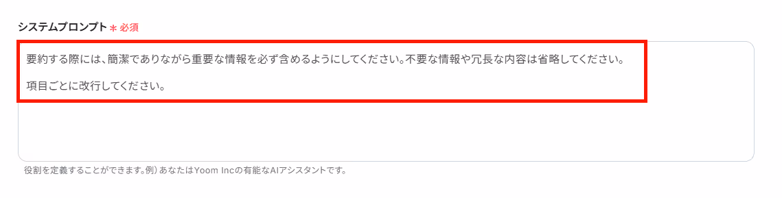 細かく設定することで、出力したい要約結果に近づけられるはずです!