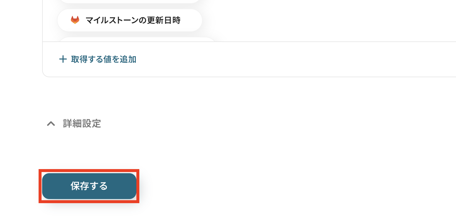 取得した値が確認できたら、最後に「保存する」ボタンを押します。