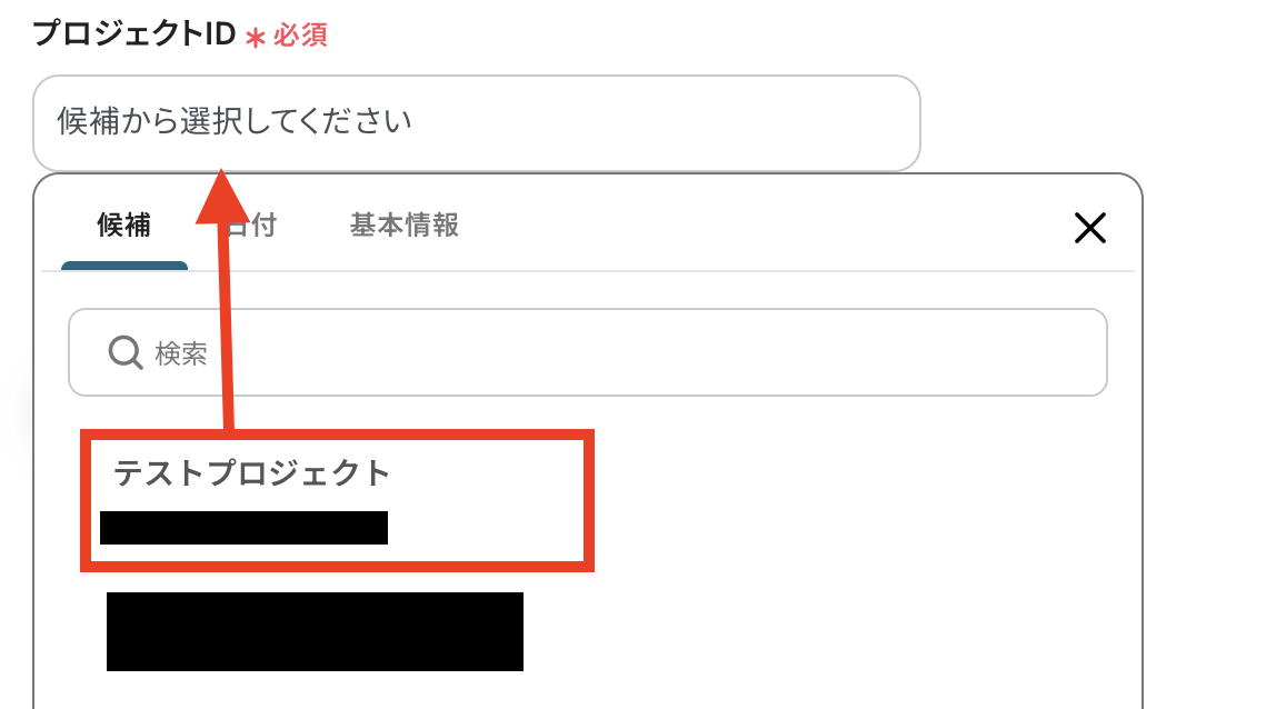 イシューを作成するプロジェクト先を選択してください。 表示された候補の中から選択します。