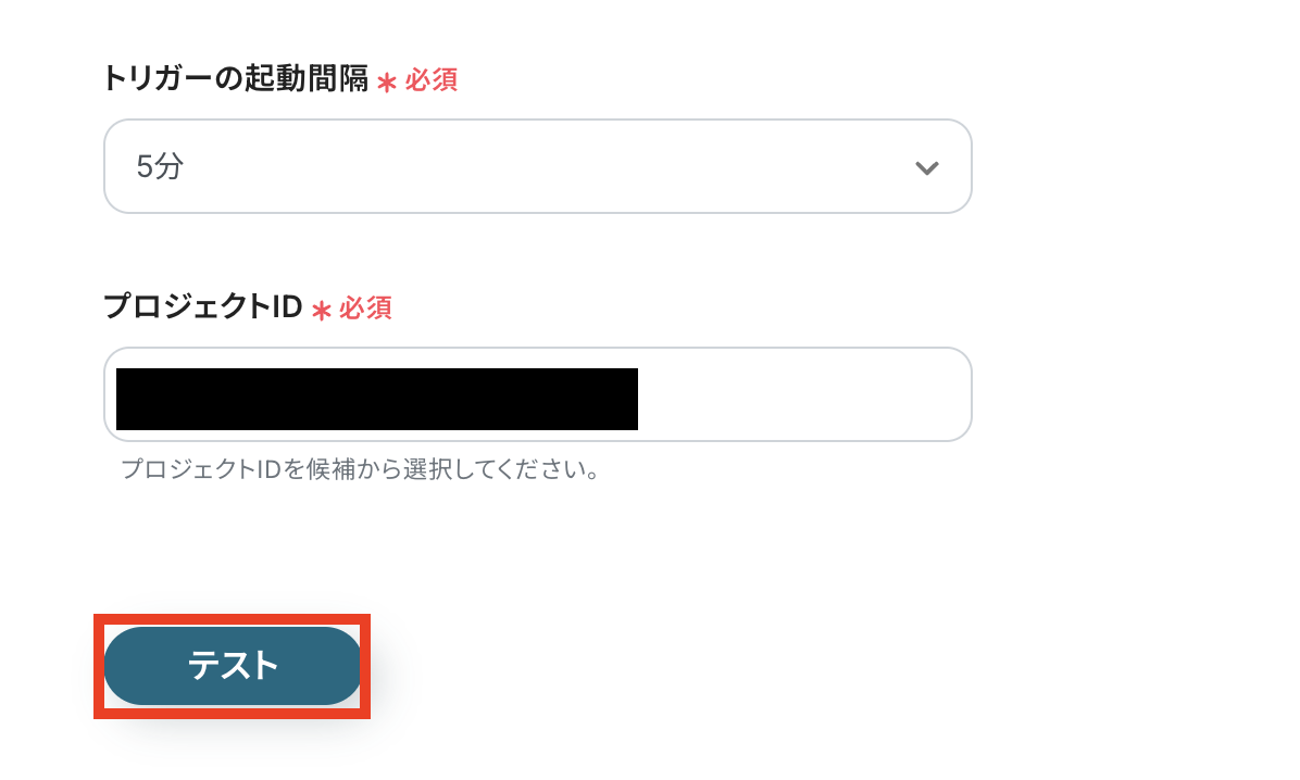 次にAPI接続設定を行います! トリガーの起動間隔を選択してください。 トリガーの起動タイミングは、5分、10分、15分、30分、60分のいずれかで設定可能です。 選択できる最短の起動間隔を選びましょう。