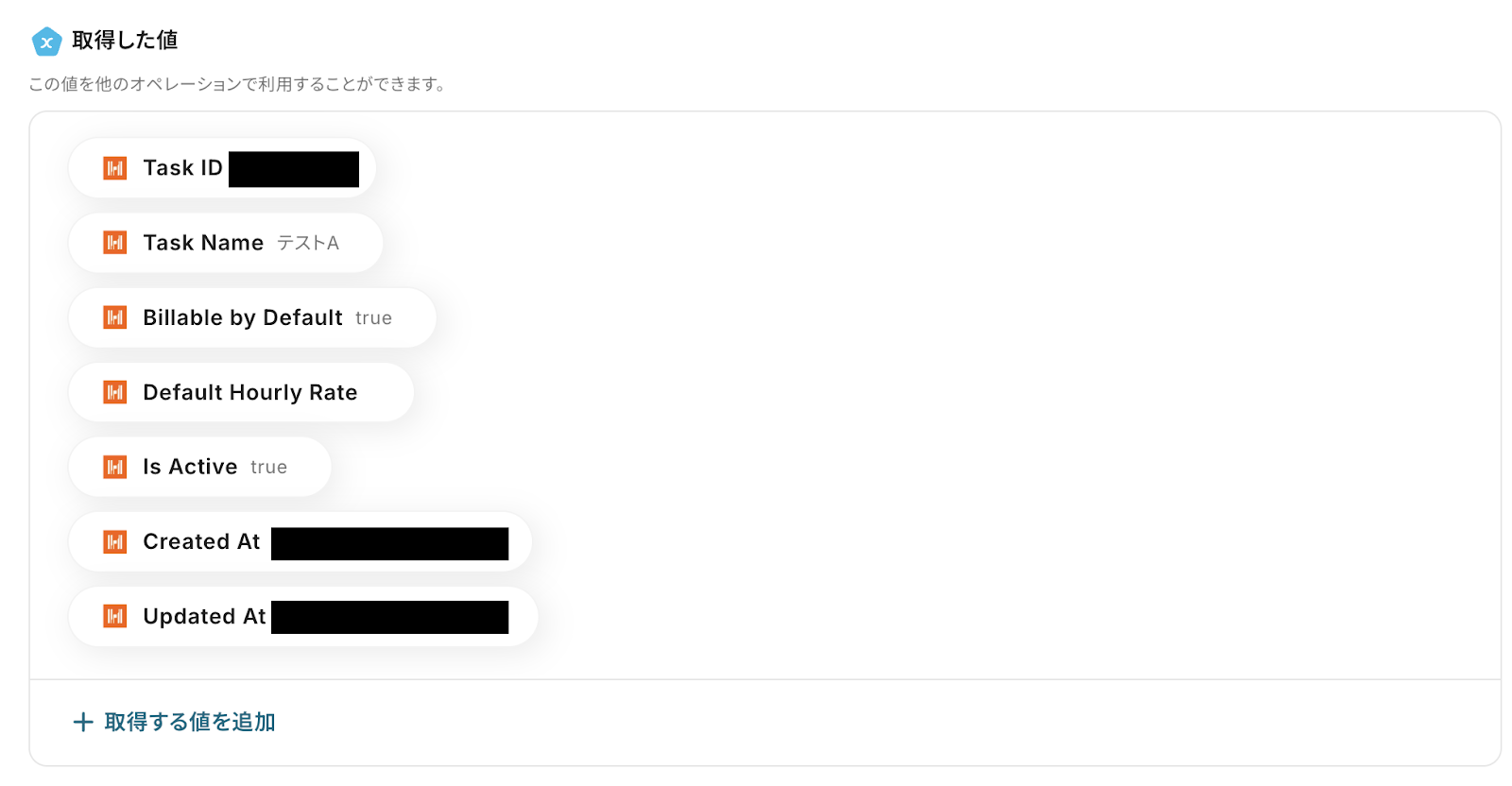 Harvestでタスクを作成するオペレーションにて、GitLabのイシューから取得した情報を基に、どのようなタスクを作成するかを任意で設定してください。例えば、イシューのタイトルをそのままタスク名にするなど、運用に合わせて柔軟な設定が可能です。 ■注意事項